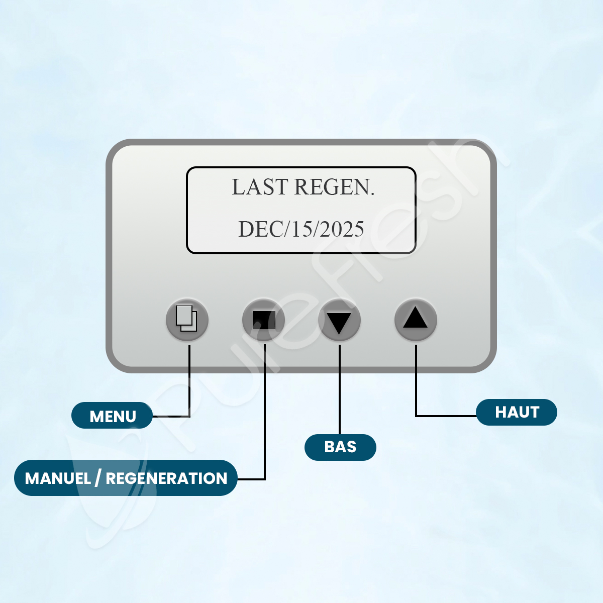 | Temps de régénération | 2 : 00 Am (Ajustable) |