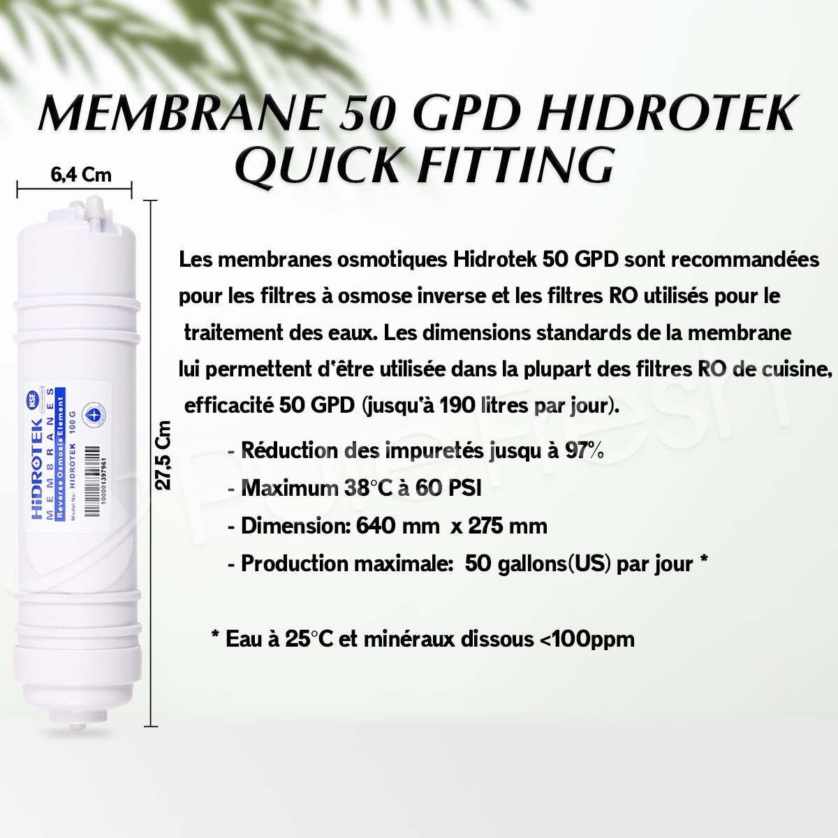 quantité de MEMBRANE RO QUICK FITTING 50 GPD